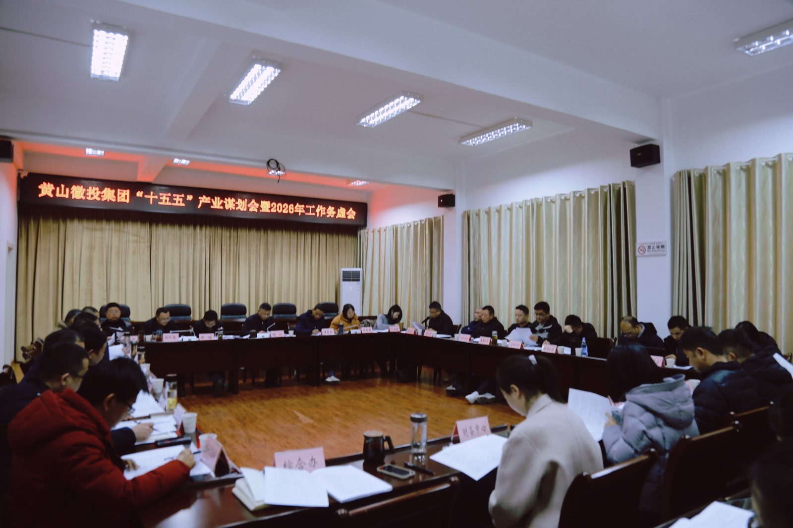 1月12日,黃山徽投集團(tuán)黨委書記、董事長鮑劍主持召開集團(tuán)“十五五”產(chǎn)業(yè)謀劃會暨2026年工作務(wù)虛會,研究謀劃“十五五”及2026年重點工作,集團(tuán)領(lǐng)導(dǎo)班子成員、集團(tuán)各部門、各子公司主要負(fù)責(zé)人以及規(guī)劃編制單位負(fù)責(zé)人參加座談。
