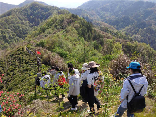 “何須名苑看春風(fēng),一路山花不負(fù)儂”。登上那郁郁蔥蔥的霞坑十八拐山頂,火紅火紅的映山紅在藍(lán)天白云下?lián)u曳生姿,山川林海云蒸霞蔚,美不勝收,讓大家忘卻身體的疲憊,駐足合影留念。此次登頂霞坑十八拐途中,大家結(jié)伴而行,互相幫助,充分展現(xiàn)了徽投員工凝心聚力、勇攀高峰的良好精神風(fēng)貌。