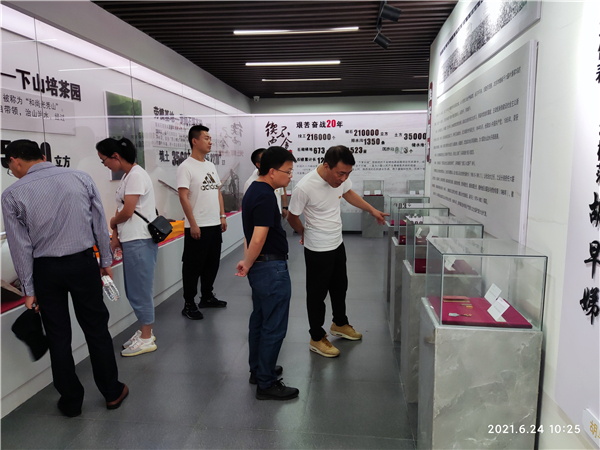 會(huì)后,大家參觀了六聯(lián)村胡早娣勞模紀(jì)念館,深入學(xué)習(xí)了勞模精神。胡早娣是社會(huì)主義建設(shè)初期涌現(xiàn)出的巾幗勞模,她團(tuán)結(jié)多名年輕婦女,組建了一支鐵姑娘專業(yè)隊(duì)治山治水,使荒山禿嶺變成了層層梯磅茶園。1957年胡早娣代表六聯(lián)茶業(yè)社進(jìn)京參加表彰大會(huì),捧回了周恩來總理親筆題詞“發(fā)展山區(qū)經(jīng)濟(jì),搞好水土保持”的錦旗,時(shí)至今日,六聯(lián)精神和胡早娣的名字仍在江淮大地廣為傳頌。